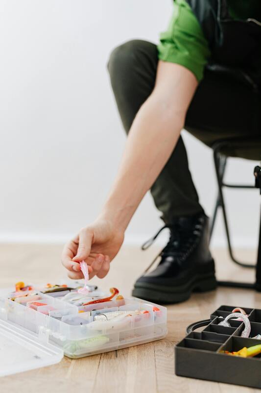 Use little bags for pliers, scissors, line clippers, and extra line.